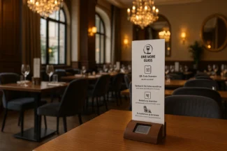 Ob moderner Aufsteller, klassischer Holzwürfel oder bündig in die Tischplatte integriert – das kompakte Display fügt sich dezent und stilvoll in jedes Gastronomiekonzept ein. So bleibt Ihr Ambiente unverändert – und Ihr Service wird digital erweitert, ohne aufdringlich zu wirken.